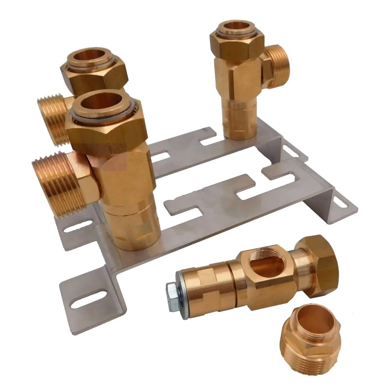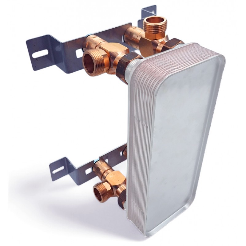 Fissaggio per scambiatore do calore 1" con raccordi in ottone.