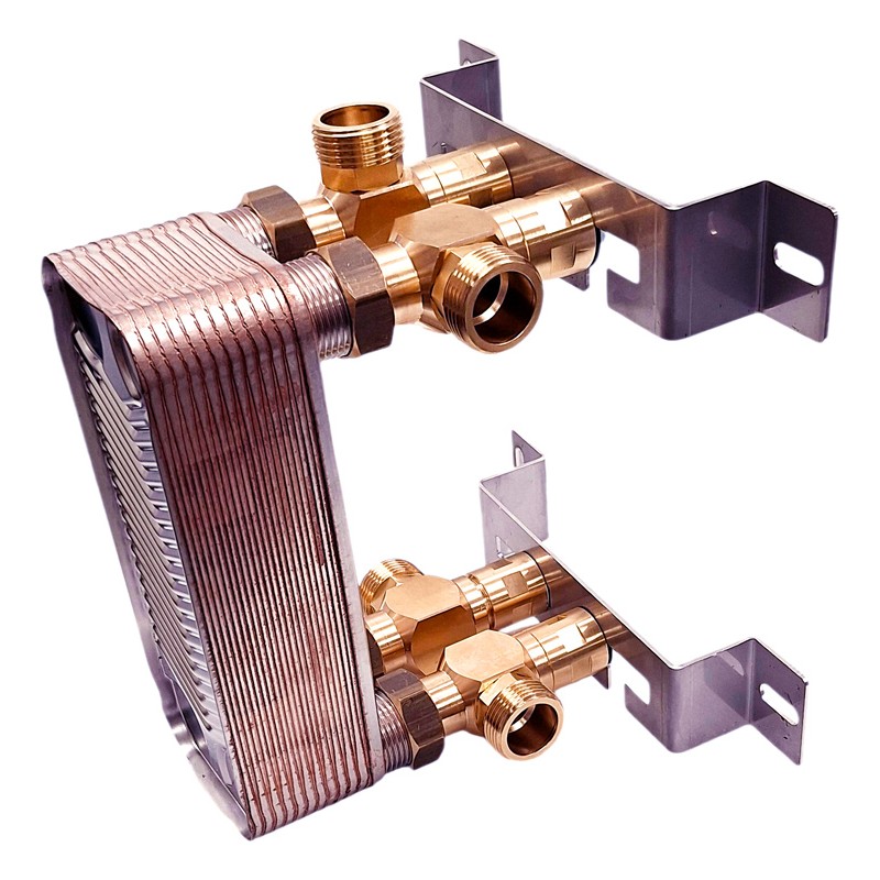 Risposta: Sì, scambiatore di calore Ba-16-24 è una buona scelta se si deve collegare un camino tra 12 e 15 kW e sono richiesti raccordi da 1". Nel caso di sistemi a vaso d'espansione riscaldati a fuoco aperto, alimentati a legna o carbone, è consigliabile utilizzare il coefficiente di 0,25-0,30 metri quadrati di superficie dello scambiatore di calore (cioè la superficie totale delle piastre) per 10 kW di potenza dell'apparecchio. Questo coefficiente include un sovradimensionamento che permette un utilizzo sicuro per molti anni.