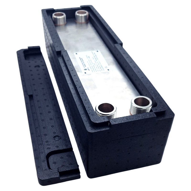 Ogni dispositivo di riscaldamento, sia che si tratti di una pompa di calore o di una caldaia di qualsiasi tipo, per poter funzionare correttamente in un sistema con uno scambiatore di calore, deve essere supportato da una superficie sufficiente delle piastre dello scambiatore stesso. Naturalmente, questo è un approccio semplificato, poiché non entriamo nei dettagli relativi ai coefficienti di scambio termico e ai calcoli precisi per ottenere una resa specifica. Tuttavia, uno scambiatore di calore con una superficie di 2,4 m² è già sufficientemente grande per essere utilizzato in alcuni impianti con pompe di calore, ma è sempre necessario effettuare una selezione accurata dello scambiatore.