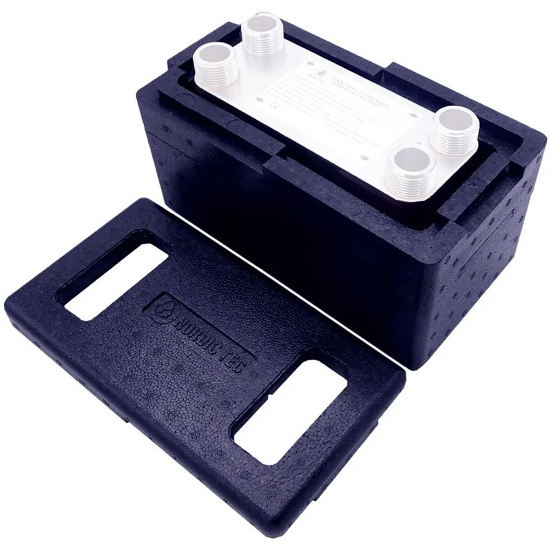 Isolamento termico per scambiatori di calore a piastre Ba-16 di Nordic Tec. L'isolamento è compatibile con la maggior parte degli scambiatori della serie Ba-16 (cioè per la maggior parte delle varianti con un numero di piastre che va da 60 a 70 unità).