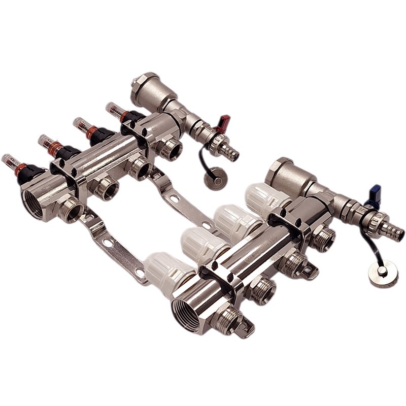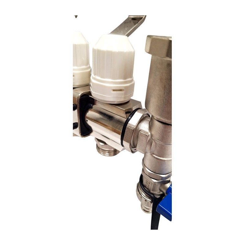 Un accessorio opzionale importante, acquistabile nel nostro negozio ma non incluso nel set sopracitato, è la valvola di intercettazione per il collettore a pavimento, consigliata per l’installazione sia all’ingresso che all’uscita del collettore. Spesso può sembrare superflua per un lungo periodo, ma in caso di manutenzione o problema, ci consente di isolare il collettore dal nostro sistema di riscaldamento e di effettuare qualsiasi intervento, come la verifica, la sostituzione del misuratore di portata, ecc., senza dover svuotare l'intero sistema dal fluido di riscaldamento.