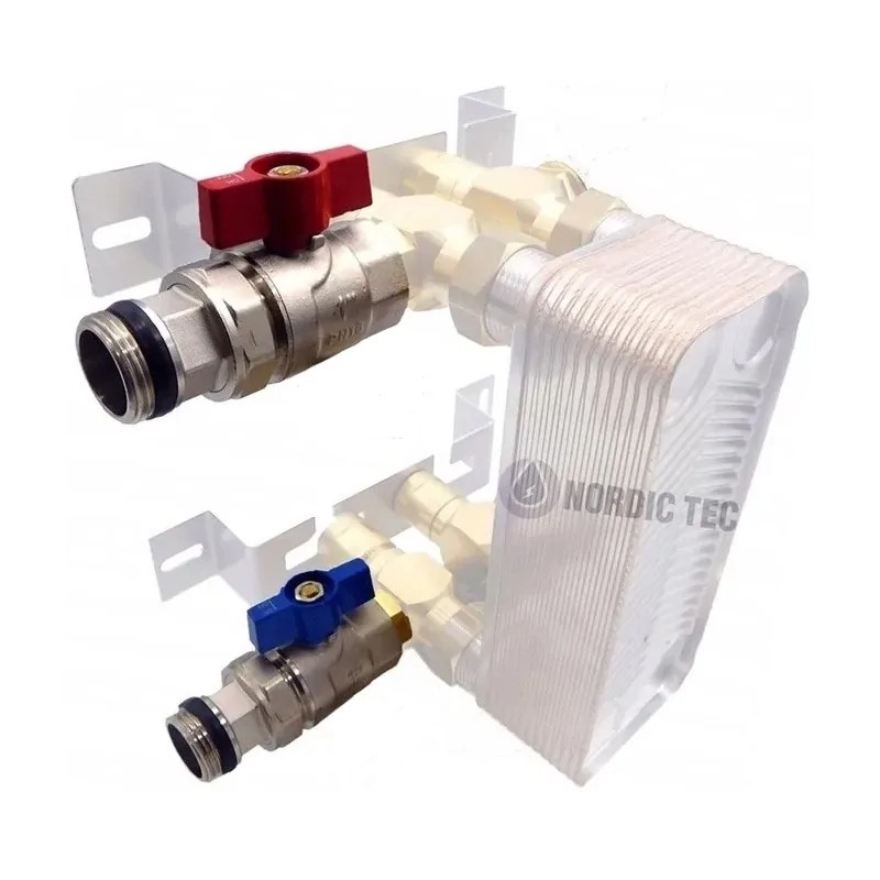 Si consiglia di installare una valvola a sfera da 3/4" prima di uno scambiatore di calore a piastre, poiché è naturalmente compatibile con la dimensione degli attacchi - in altre parole, se anche il nostro scambiatore di calore a piastre ha un filetto da 3/4". La valvola a sfera offre la migliore protezione in caso di guasto, come una rottura o una perdita, oppure in caso di necessità di manutenzione dello scambiatore (ad esempio la pulizia periodica dello scambiatore di calore).
