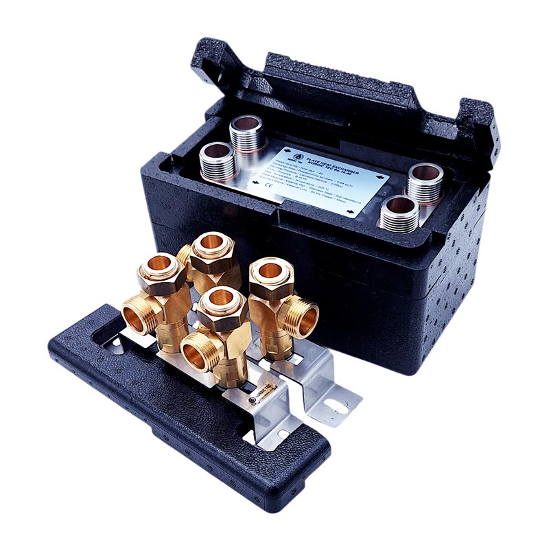 Scambiatore Ba-16-40, in kit completo (con isolamento e staffa di montaggio) e inoltre con valvole dotate di termometri.