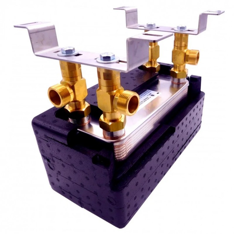 Lo scambiatore a piastre Ba-27-80 può essere acquistato opzionalmente con isolamento. Considerando il peso dell’apparecchio (circa 12 kg senza fluidi), consigliamo inoltre di valutare l'acquisto di un supporto di montaggio – fissaggio a parete da 5/4" – per appendere lo scambiatore al muro in modo stabile.