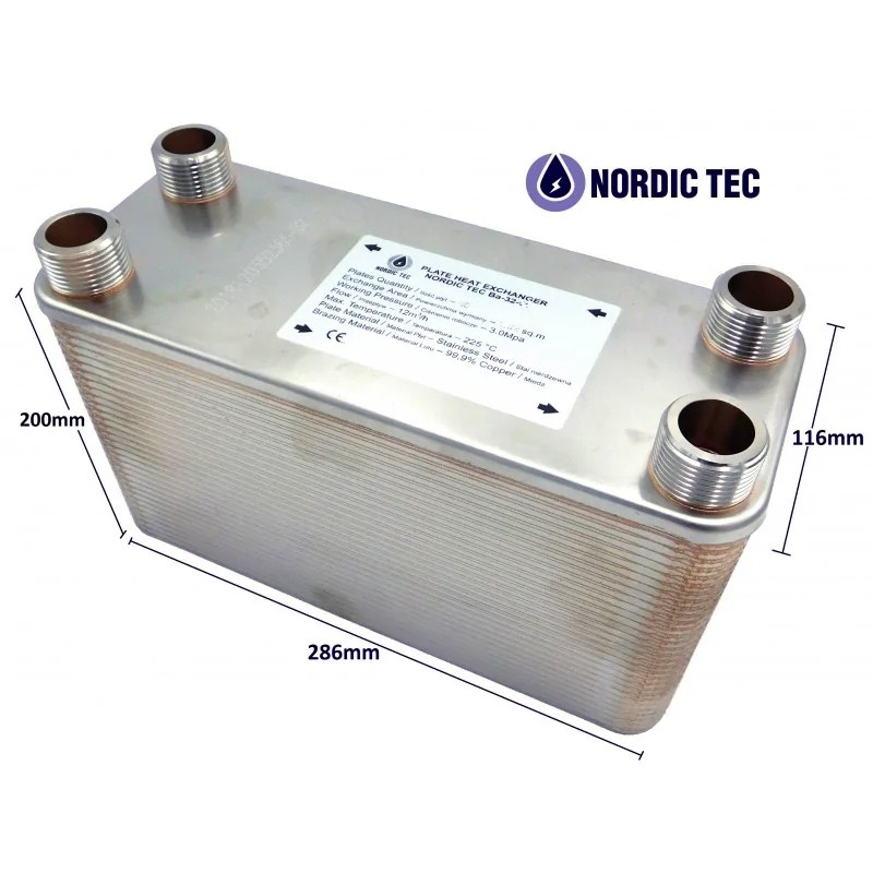 Scambiatore di calore a 80 piastre per riscaldamento NORDIC TEC Ba-27-80 5/4" | DN32