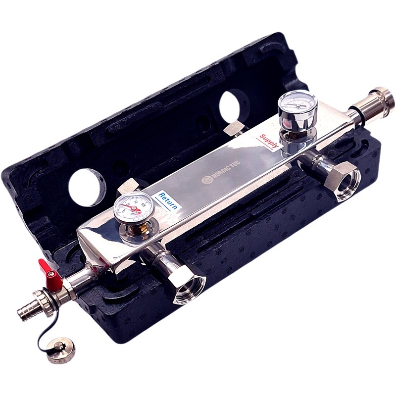 Separatore idraulico per riscaldamento con manometr, termometro e isolamento | Nordic Tec